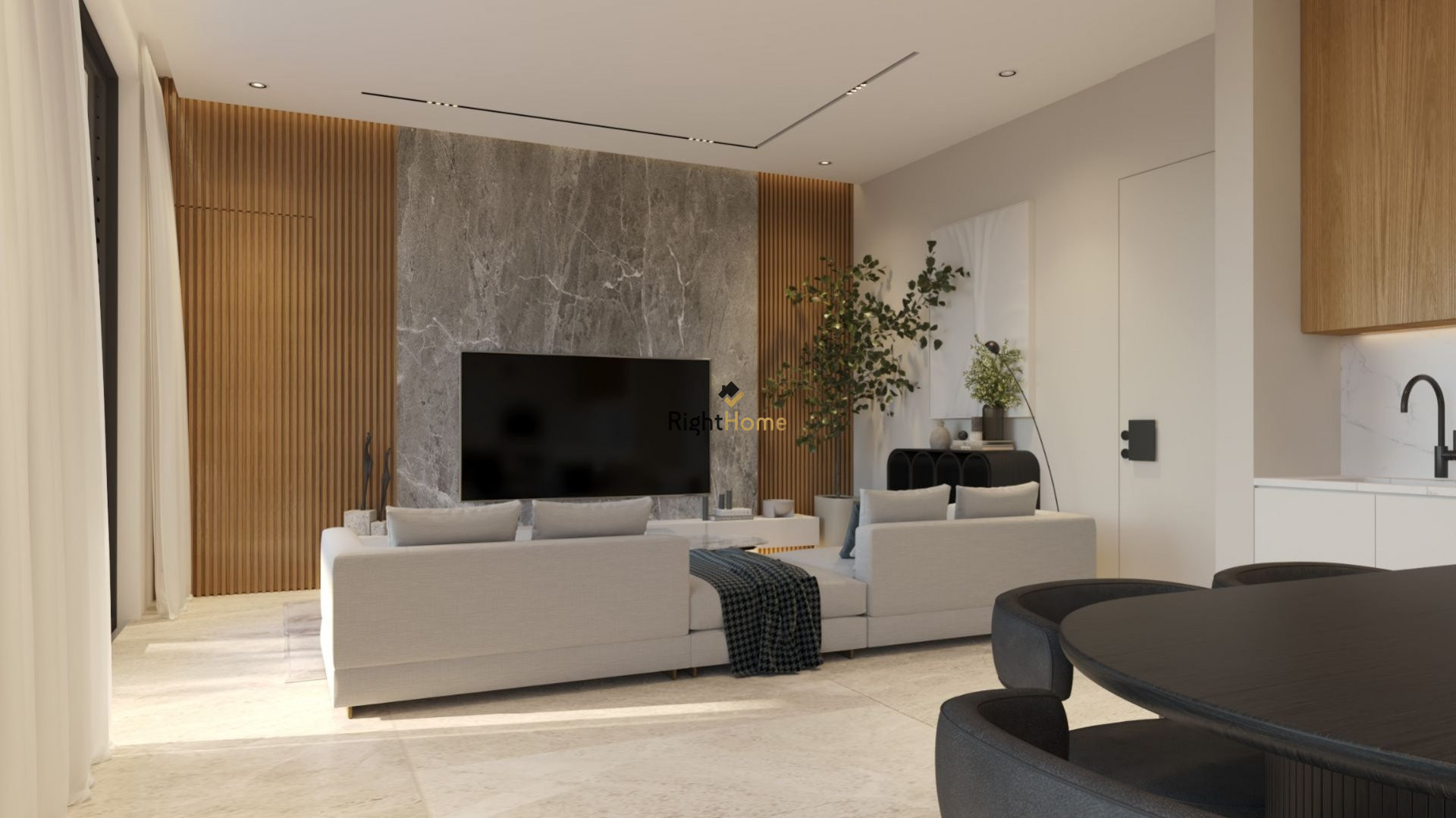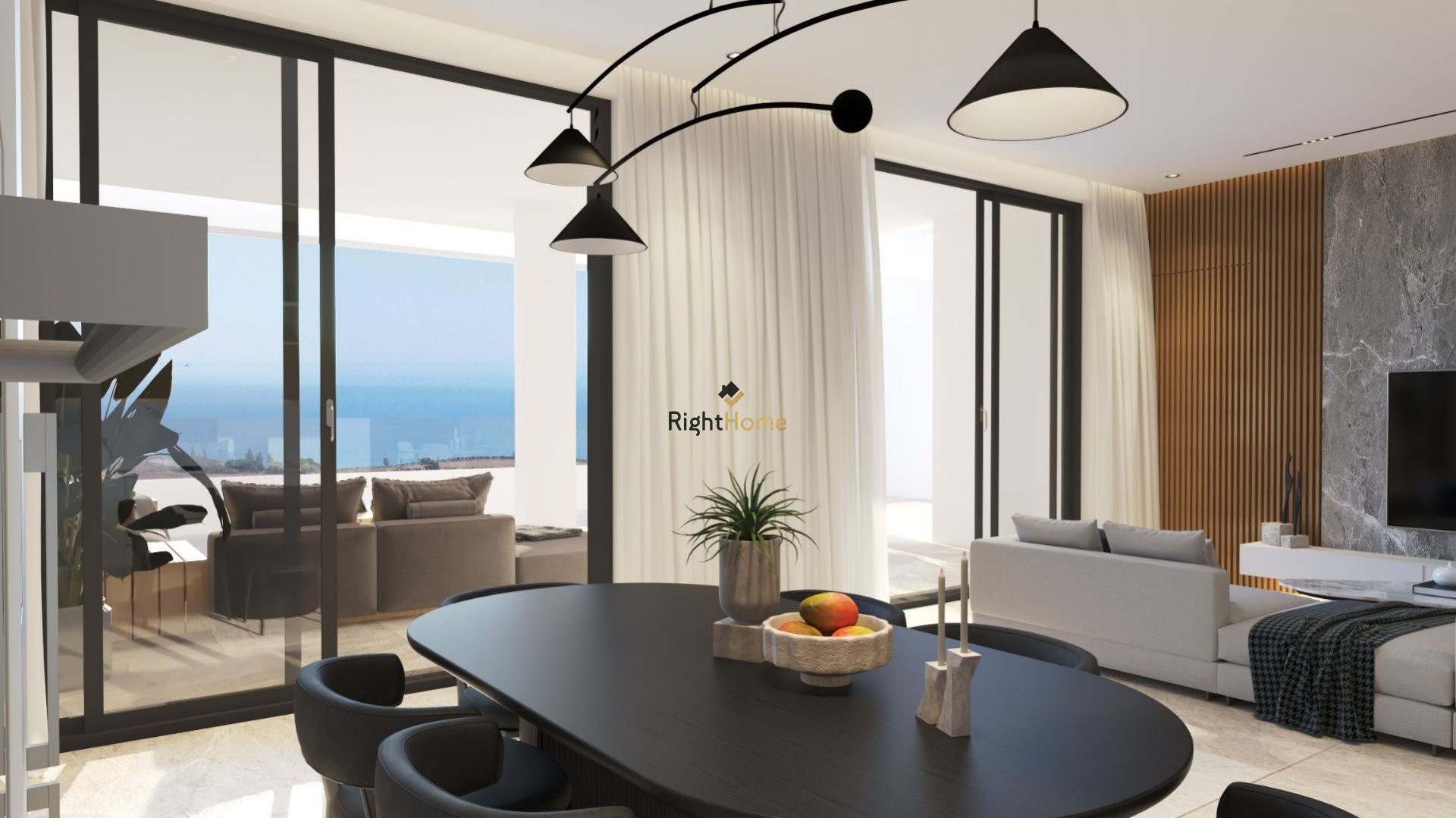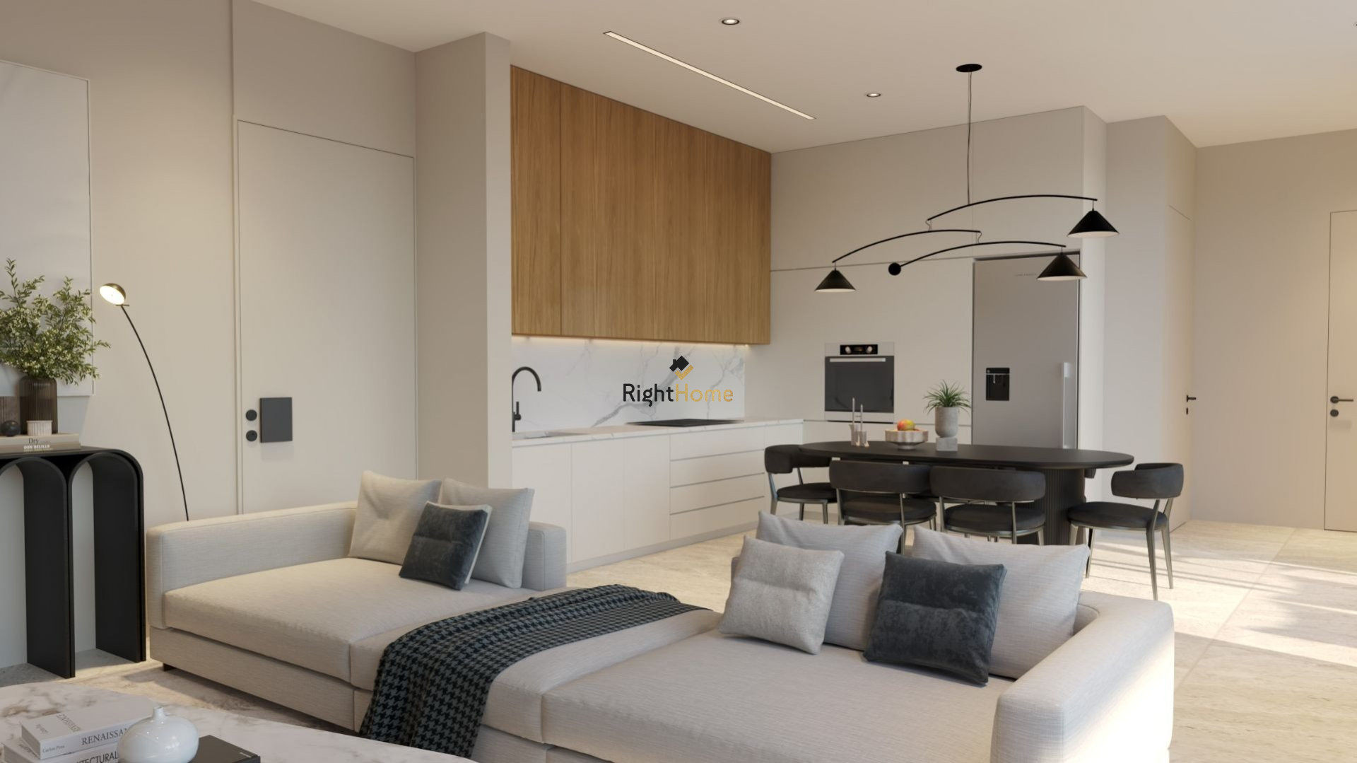 • Open-Plan Living: Experience a seamless blend of living, dining, and kitchen areas, enhanced by large glass sliding doors that bring the outdoors in.