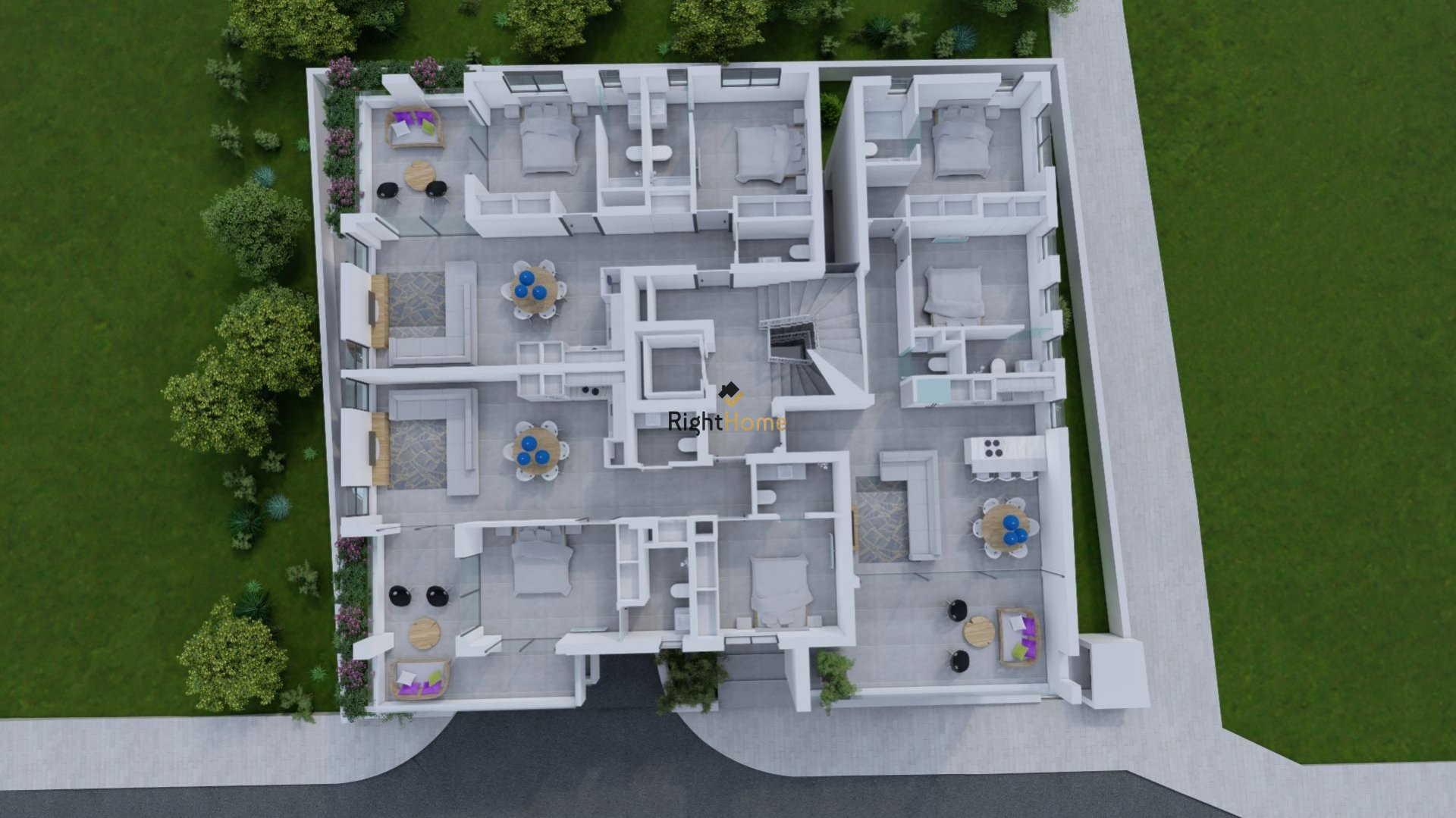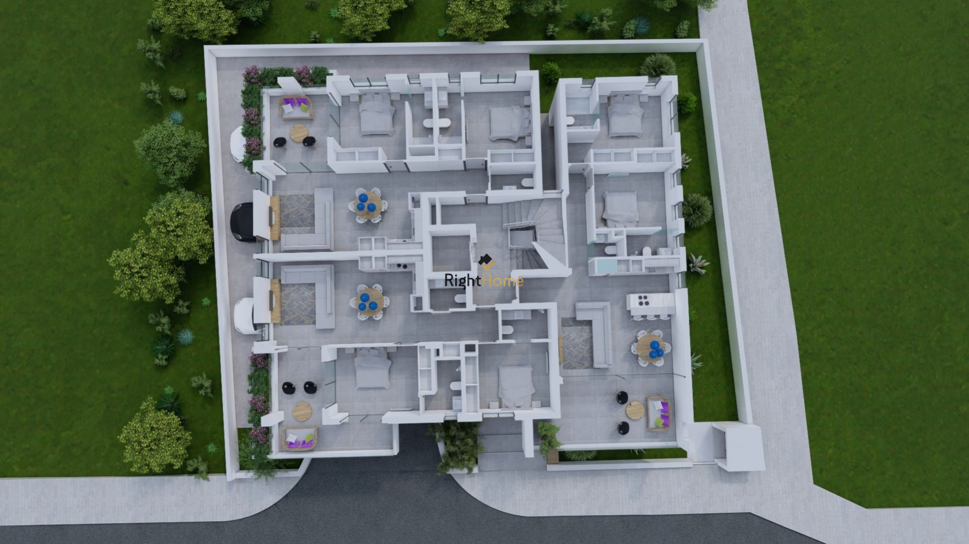 A total of 6 Apartments where each one of the Apartments will have spacious covered and uncovered verandas with amazing views, 2 bedrooms, 2 Bathrooms(1en-suite), open plan kitchen-living room, Private covered parking, storage area on the ground floor, and 3 of the apartments will have additional Roof Garden on the top of the building.